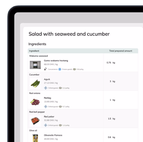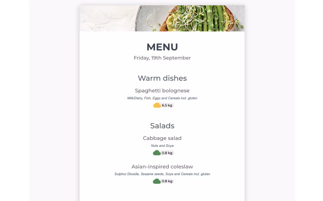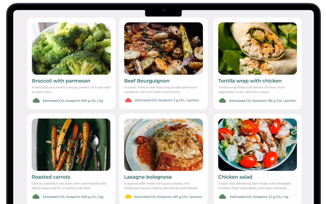 Effortlessly track and report the CO₂ impact of your recipes and menus.