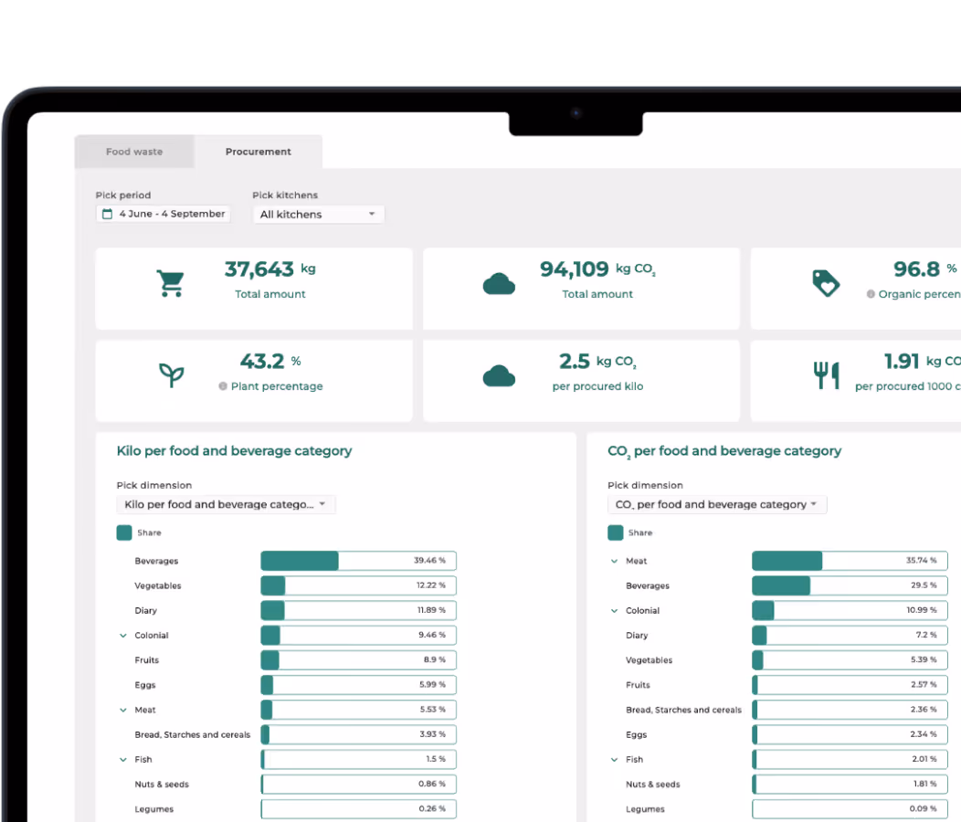 Gain full visibility into your sustainability performance and see how menu changes or strategic decisions move the needle.